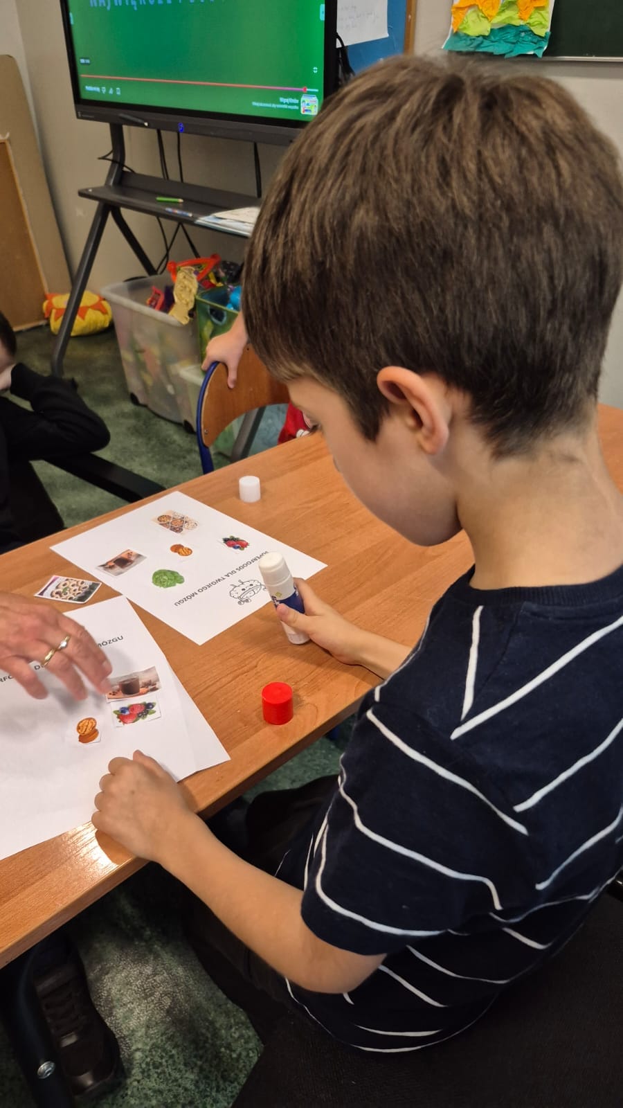- Zostań swoim dietetykiem – ćwiczenie z wybierania zdrowych produktów (wyklejanie w grupach; omówienie).